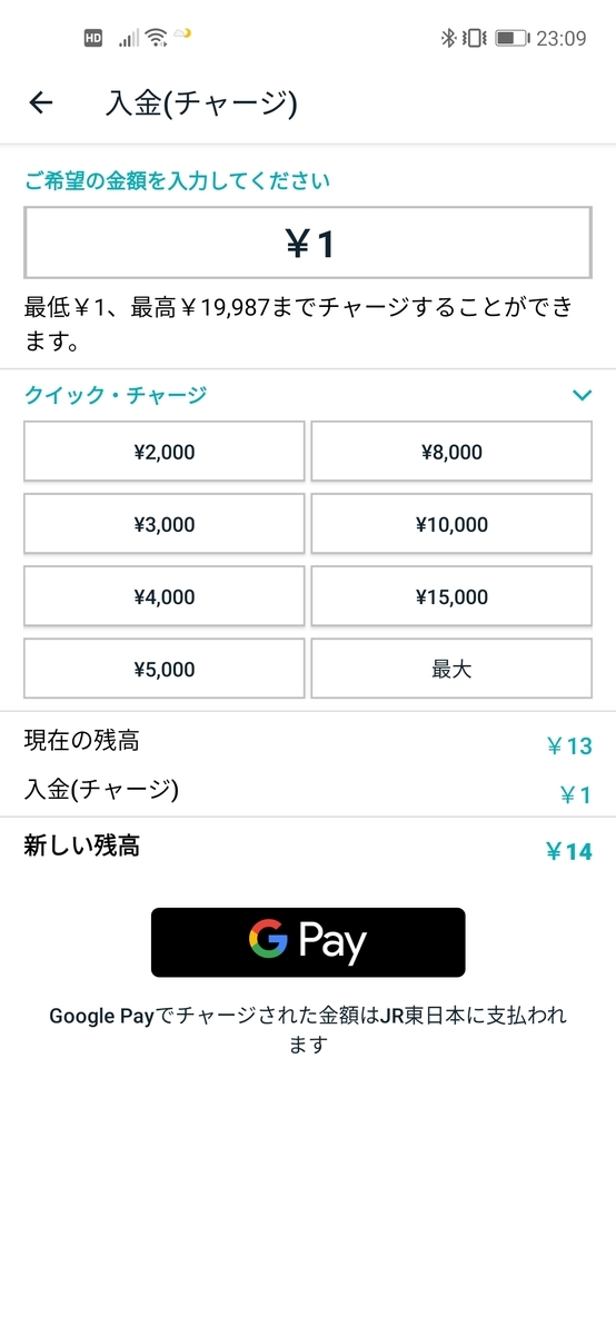 GooglePayでのカード決済にて~¥20,000までを購入できます。
