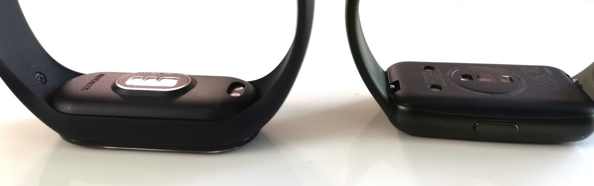 本体重量はXiaomi Smart Band 7の方が軽いのですが、厚みとセンサーが飛び出ている分、手首に後が残ります。厚みのせいで自然な着け心地とは言えません。